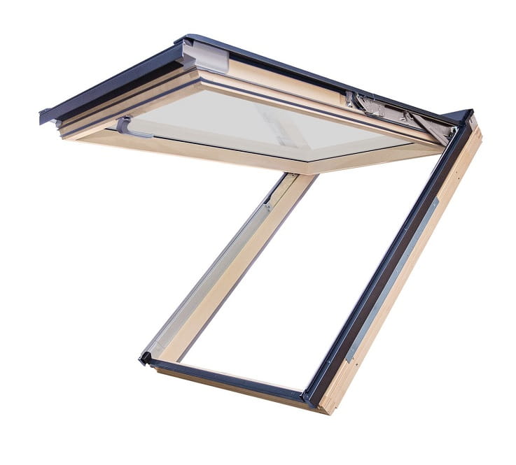 Zaawansowana konstrukcja okna umożliwiająca dwa sposoby otwierania: - uchylny aż do kąta 45°- pełniejsze wykorzystanie stworzonej na poddaszu dodatkowej przestrzeni. - obrotowy - pozwala na obrót skrzydła o 180°. Okna z pakietem szybowym typu U41 (3 szybowe, 2komorowe), zewnętrzna szyba hartowana z dożywotnią gwarancją na rozbicie przez grad. Okna wykonane w technologii thermoPro oraz topSafe. Okno w wersji z nawiewnikiem - okno wyposażone w nowy nawiewnik.