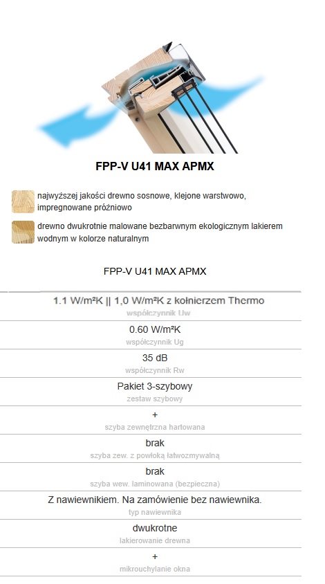 OPIS: OKNA UCHYLNO-OBROTOWE DREWNIANE FPP-V U41 APMX
