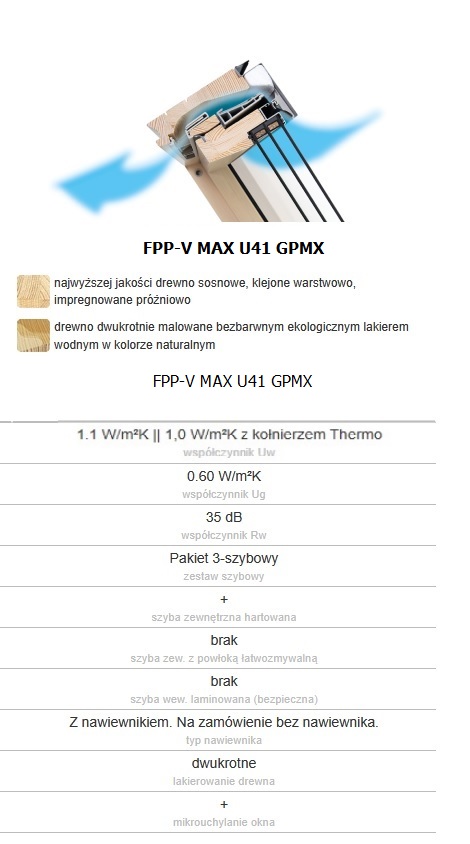 OPIS: OKNA UCHYLNO-OBROTOWE DREWNIANE FPP-V U41 GPMX