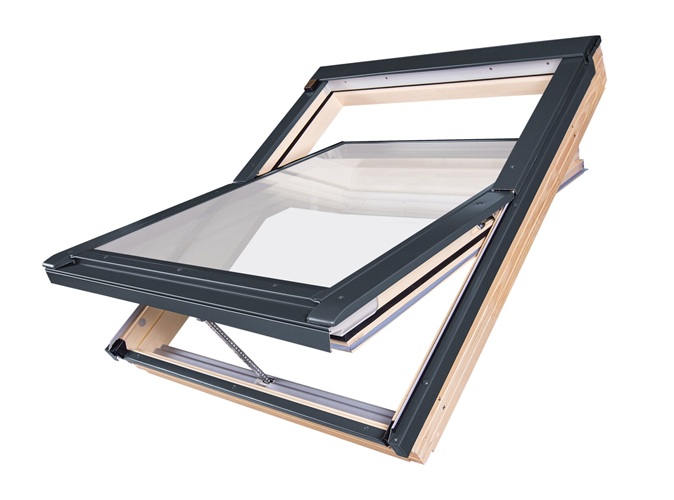 - Popularna konstrukcja okien z zawiasem umieszczonym w połowie wysokości okna. Komfortowa obsługa okna za pomocą aplikacji ze smartfona.
