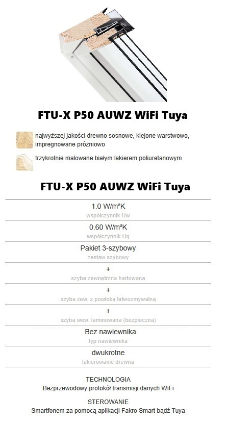 OPIS - OKNA OBROTOWE DREWNIANE FTU-X P50 WiFi AUWX