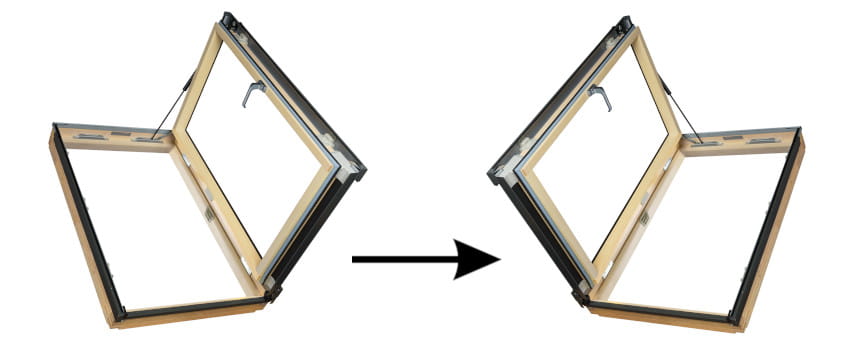 Nowa konstrukcja okna sprawia, że skrzydło może być otwierane na prawą lub lewą stronę.