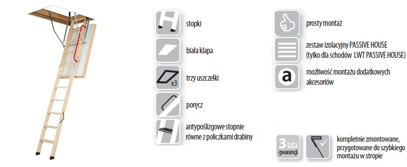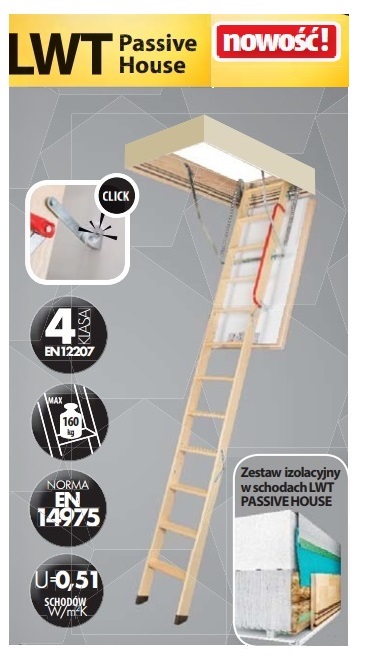 Schody LWT Passive House to kompleksowe rozwiązanie przeznaczone dla budownictwa pasywnego. Zastosowanie supertermoizolacyjnych schodów strychowych oraz zestawu łączącego schody ze stropem gwarantuje doskonałą szczelność i izolacyjność bez mostków termicznych.
