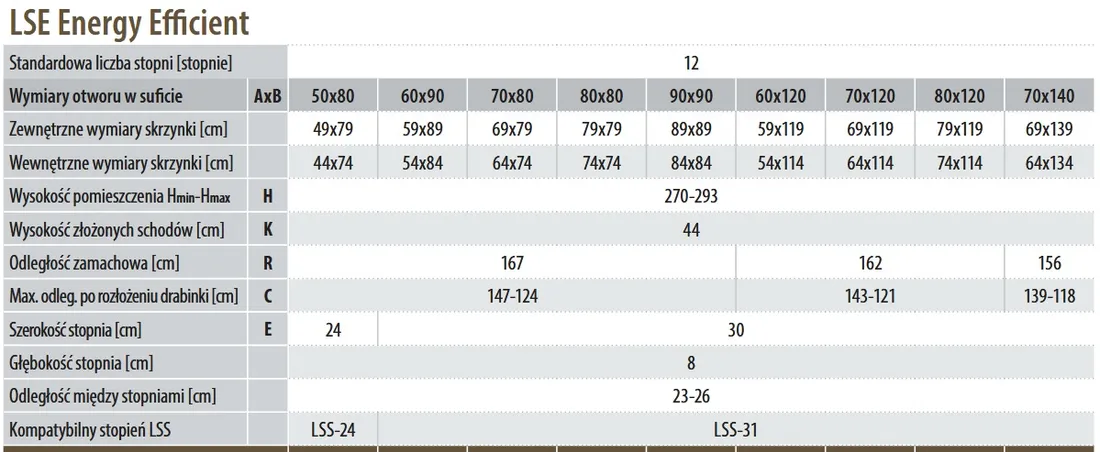 W tabeli poniżej przedstawiono kompatybilność nowych schodów LSE Energy Efficient i LST Super Thermo z akcesoriami do schodów strychowych FAKRO. Szczegółowe informacje odnośnie montażu akcesoriów dostępne w aktualnych folderach produktu.
