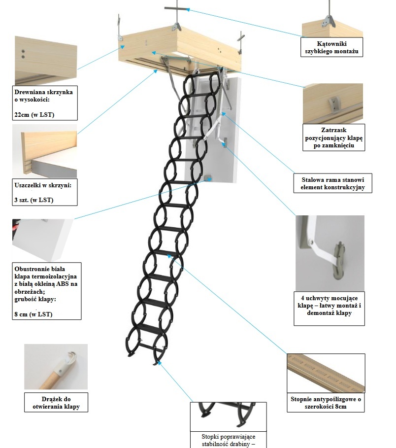 - w komplecie drążek do obsługi schodów oraz kątowniki szybkiego montażu LXK.