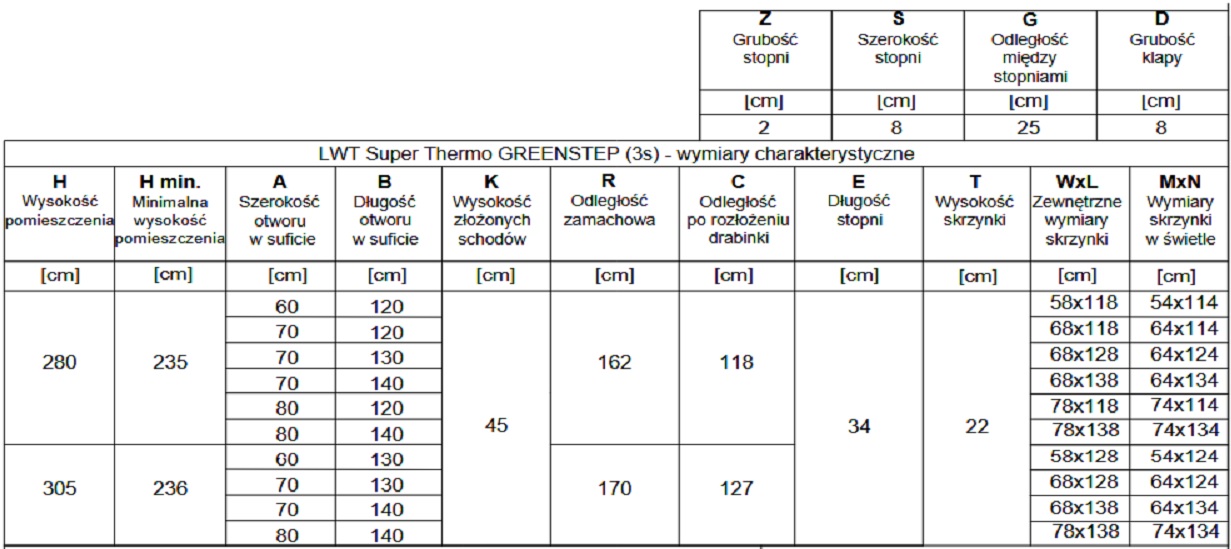 - rzeczywisty wymiar zewnętrzny skrzynki schodów to 78x118 cm (jak w tabeli poniżej)