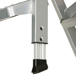 - wysuwane nóżki umożliwiają szybkie dopasowanie długości drabiny do wysokości pomieszczenia bez konieczności jej przycinania (regulowane stopki ochronne)