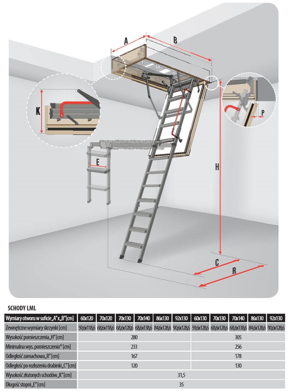 Schody segmentowe LML LUX to segmentowe schody strychowe, z metalową drabinką, które zaprojektowano w celu zapewnienia najwyższego komfortu użytkowania oraz obsługi przy jednoczesnym uproszczeniu procesu montażu i regulacji długości drabinki do wysokości pomieszczenia.
