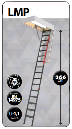 LMP to schody nowej generacji, które umożliwiają dostęp do przestrzeni strychowej, nawet w bardzo wysokich pomieszczeniach (od 300 do 366 cm). Zastosowany system odciążania drabinki pozwala na wygodną obsługę przy zachowaniu maksymalnego komfortu i bezpieczeństwa użytkowania.