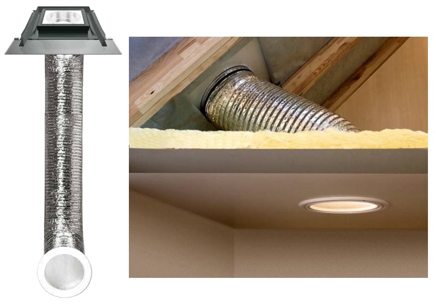 Charakterystyczną cechą świetlika jest giętka rura światłonośna ułatwiająca montaż.