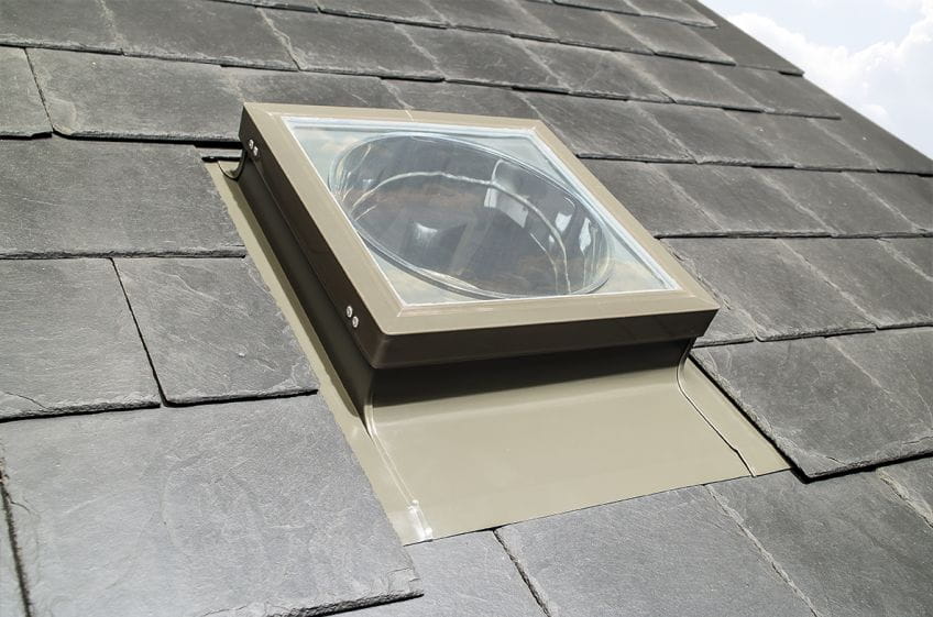 Świetlik SFL do dachów skośnych zintegrowany z kołnierzem uszczelniającym do pokryć łuskowych płaskich typu łupek , dachówka karpiówka , gruby gont papowy.