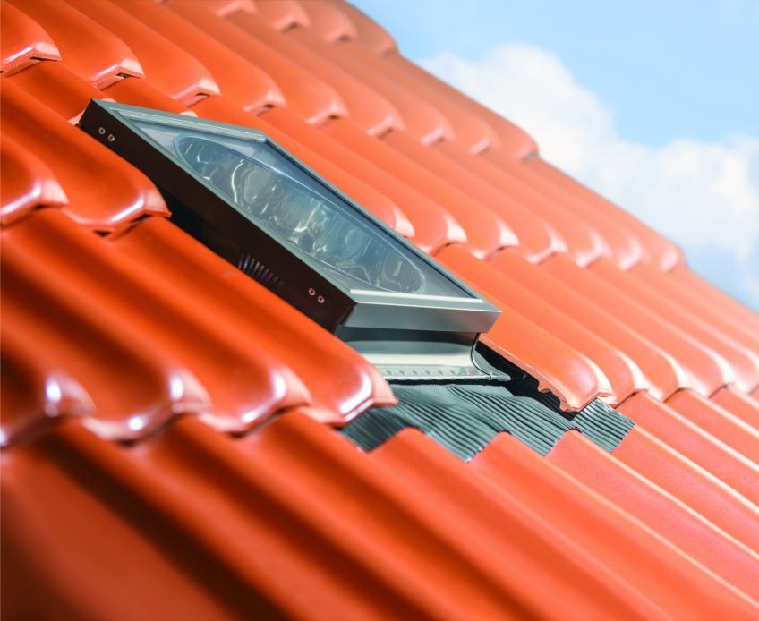 Świetlik zintegrowany z uniwersalnym kołnierzem uszczelniającym do pokryć falistych o wysokości profilu do 90mm np: wysokoprofilowana dachówka, blachodachówka, blach trapezowa