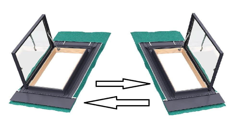 Wyłaz dachowy WGU-X otwierany na bok z kołnierzem uniwersalnym oraz kołnierzem paroprzepuszczalnym, wyposażony w sprężynę gazową i listwę progową. Wyłaz dedykowany do pomieszczeń nieogrzewanych, w których temperatura zbliżona jest do temperatury na zewnątrz. Otwierany jest na bok z możliwością zmiany strony otwierania.