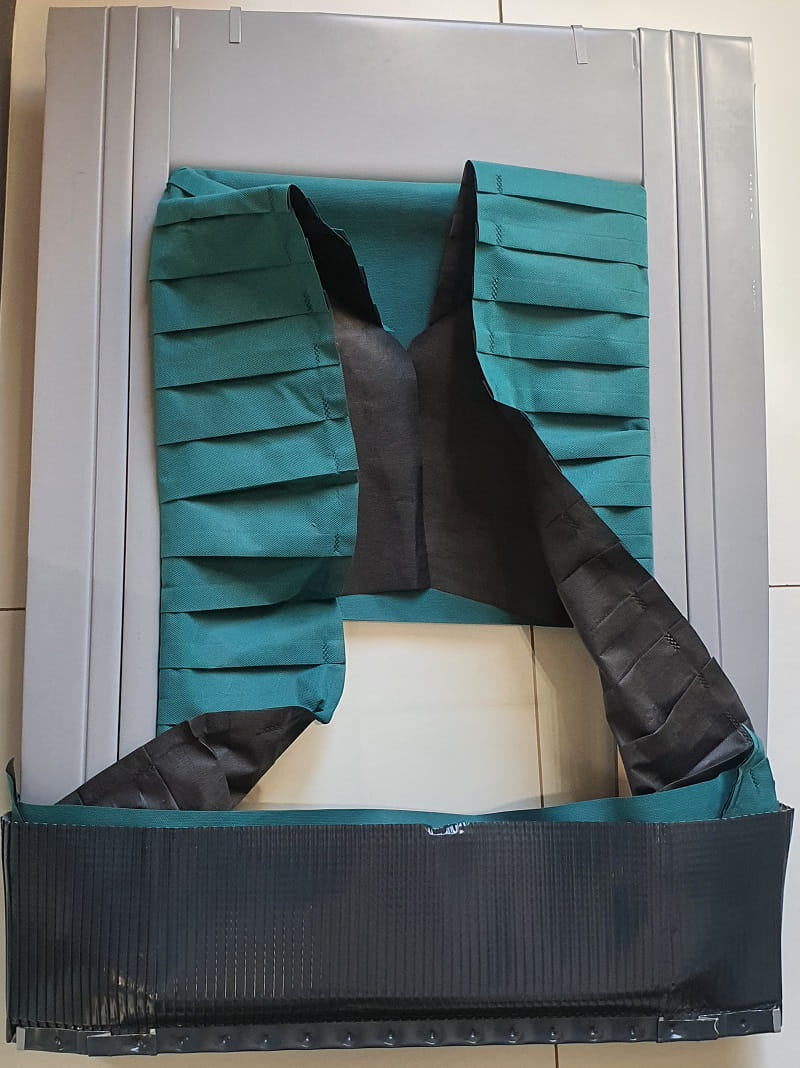 Wyłaz jest zintegrowany z uniwersalnym kołnierzem oraz z fartuchem / kołnierzem paroprzepuszczalnym.