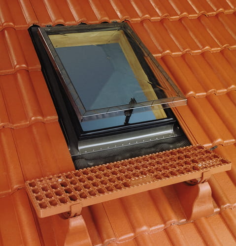 - prosty montaż na łatach nie wymaga wykonania wymianów czy nadbitek, jak również umożliwia przesuwanie wyłazu w czasie montażu w poziomie w celu lepszego dopasowania do profilu pokrycia dachowego,